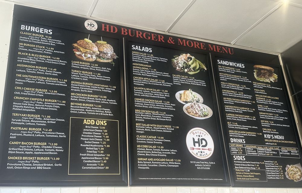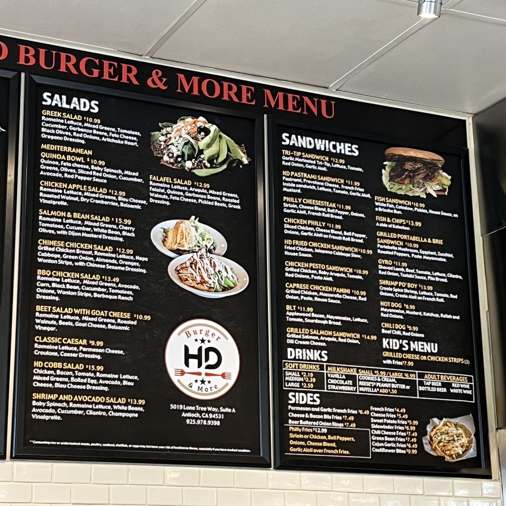 Located in Antioch, CA, HD Burger & More serves up a delightful array of burgers, salads, and more in a casual setting that's perfect for families and groups. Their menu is a celebration of New American cuisine, featuring delicious options like the Crispy Chipotle Burger and a popular fish burger, each crafted with fresh ingredients.