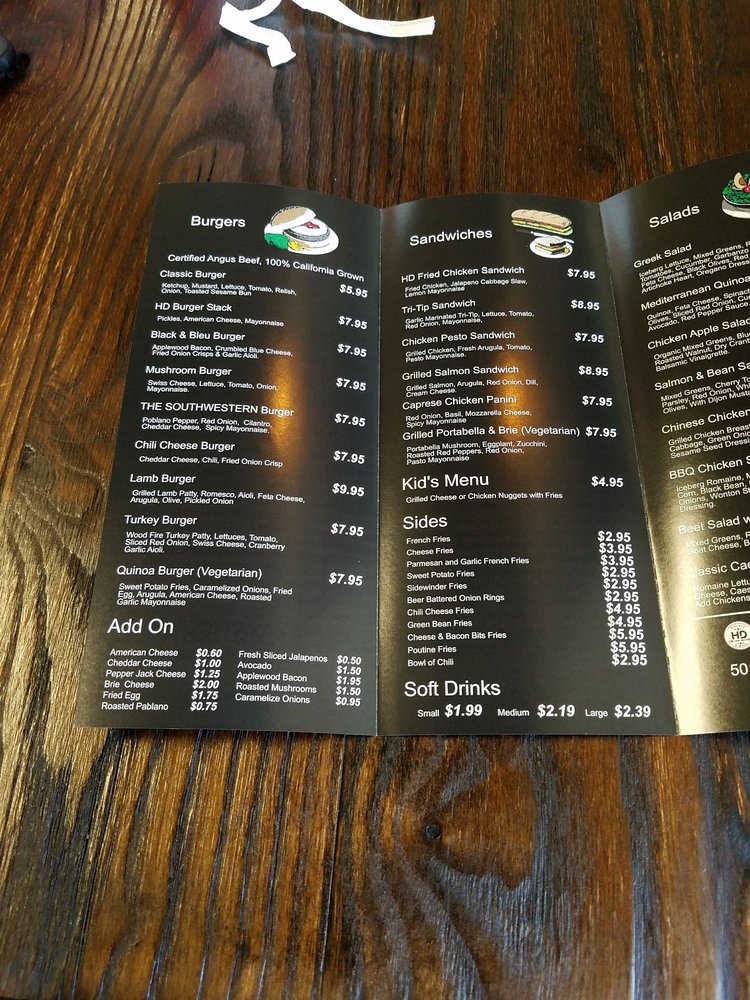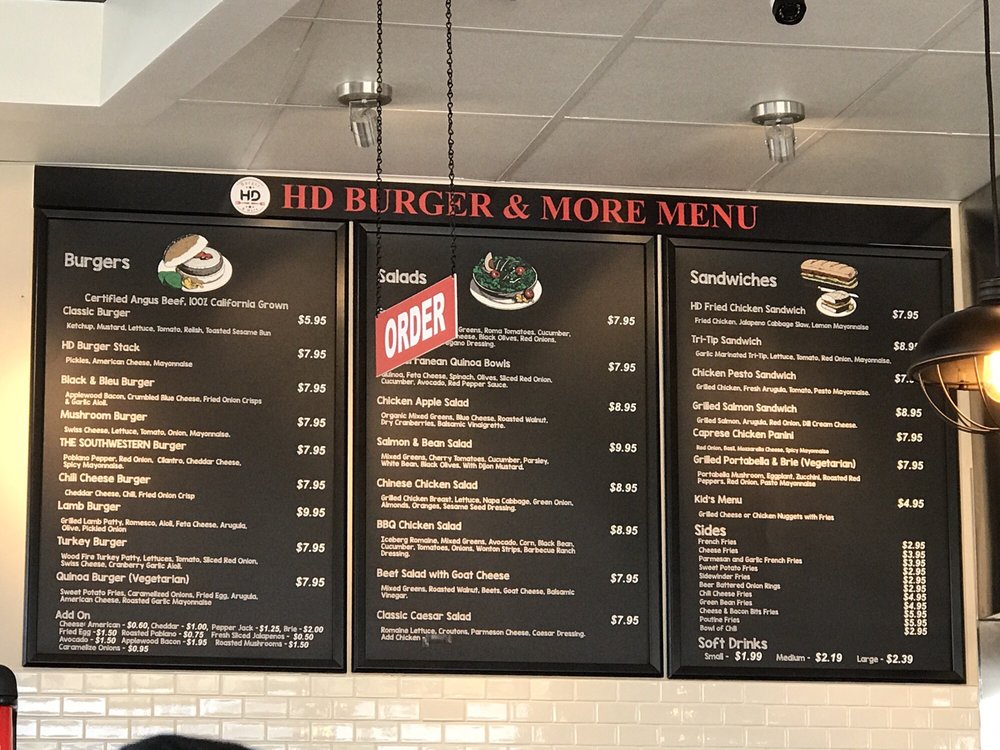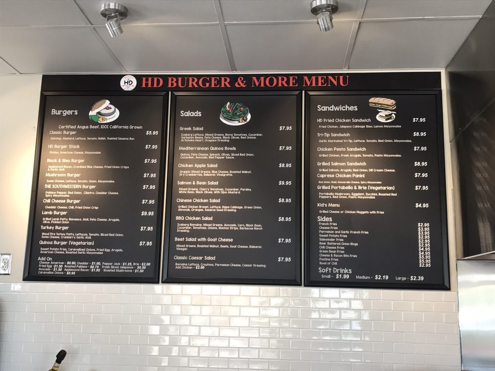 Introducing the Menu at HD Burger & More